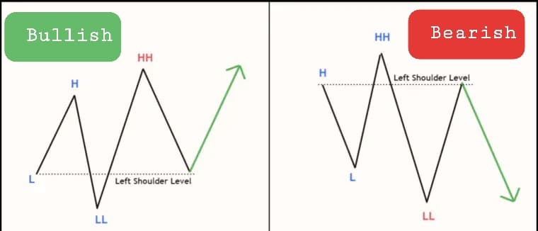 When trading the Quasimodo pattern, entry is typically made at the left shoulder level. Traders can place a stop-loss order above the higher high or below the lower low, depending on the direction of the anticipated reversal. Take profit levels can be set at the recent lower low or higher high, aiming for a favorable risk-to-reward ratio.